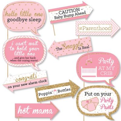 Big Dot Of Happiness Hello Little One Pink And Gold Girl Baby Shower Photo Booth Props Kit 20 Count