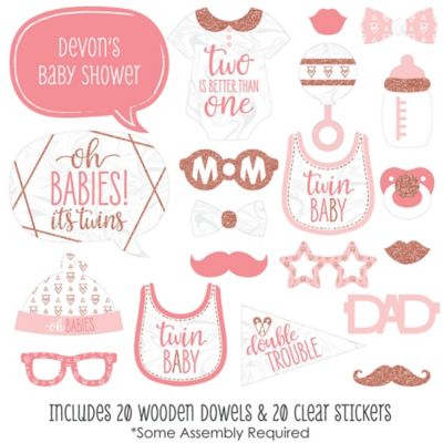 It S Twin Girls 20 Piece Pink And Rose Gold Twins Baby Shower Photo Booth Props Kit