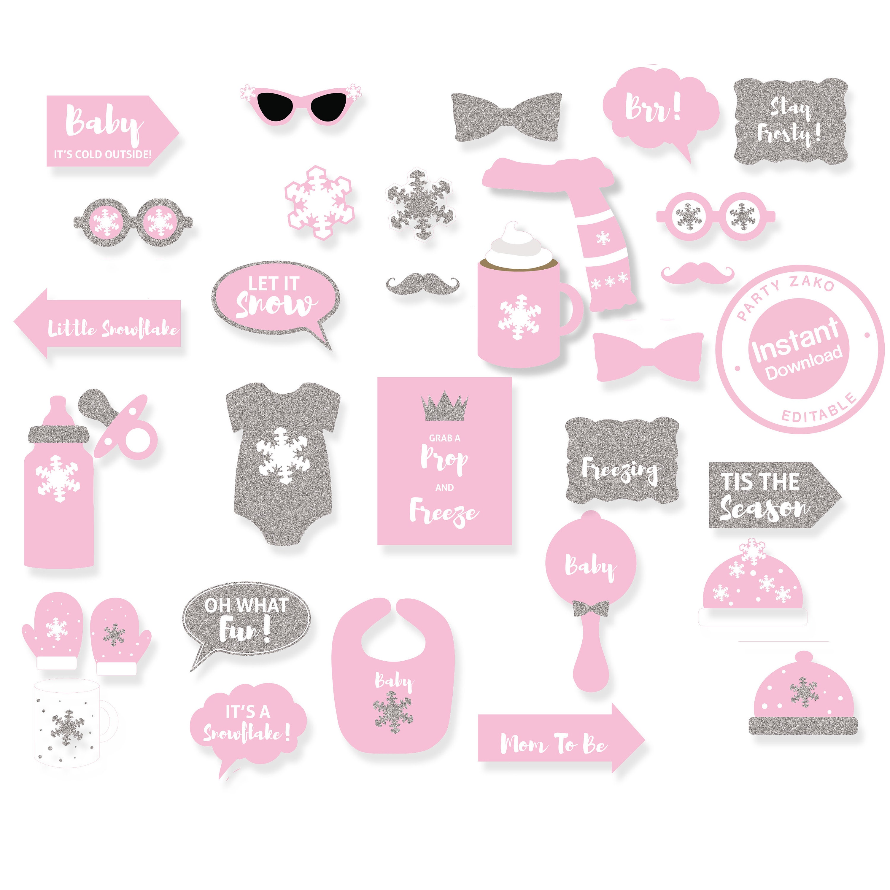 Pink Winter Baby Shower Props Little Snowflake Girl Baby Shower Props Girl Winter Baby Shower Props Pink Snow Photo Booth