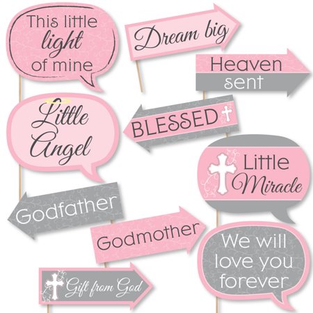 Funny Little Miracle Girl Pink Gray Cross Baptism Or Baby Shower Photo Booth Props Kit 10 Piece