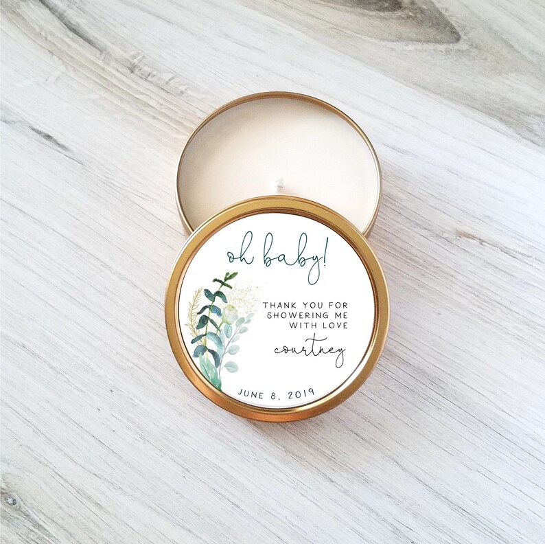 4 Oz Baby Shower Candles Baby Shower Favors Candle Favors Personalized Candles Gold Travel Tin Candle Custom Candles Baby Candle Favor