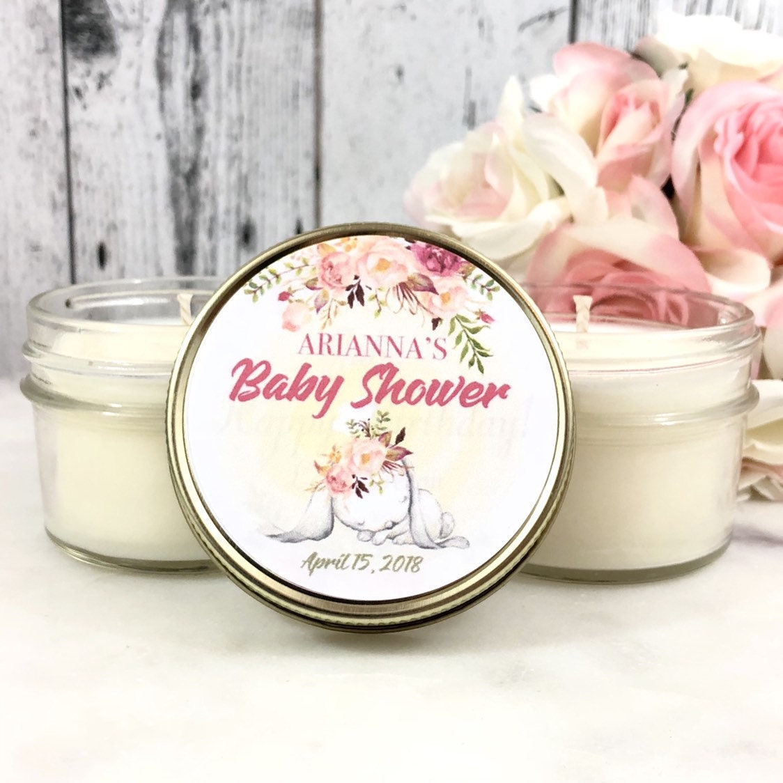 Girl Baby Shower Favors Candles Bunny Baby Shower Favors Blush Baby Shower Floral Baby Shower Favors Spring Baby Shower Set Of 12