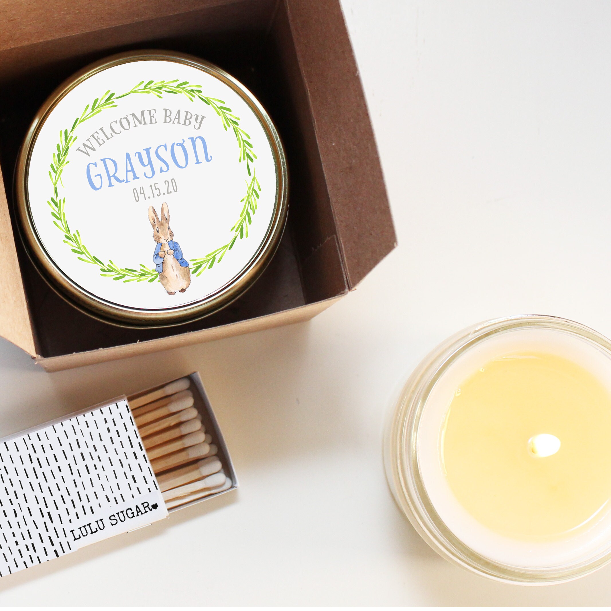 Peter Rabbit Baby Shower Favor Candles Neutral Baby Shower