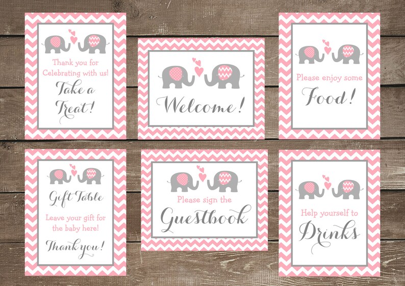 Pink Floral Elephant Baby Shower Signs D431 Baby Printables