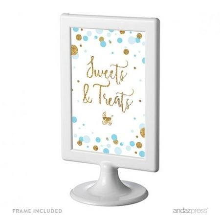 Sweets Treats Baby Blue Gold Glitter Baby Shower Framed Party Signs