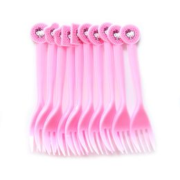 10pc Set Hello Kitty Party Supplies Cartoon Theme Plastics Fork Baby Shower Festival For Kids Girl Boy Birthday Party Decoration