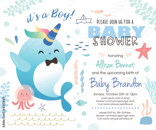 Baby Shower Under The Sea Theme Invitation Card With Cute