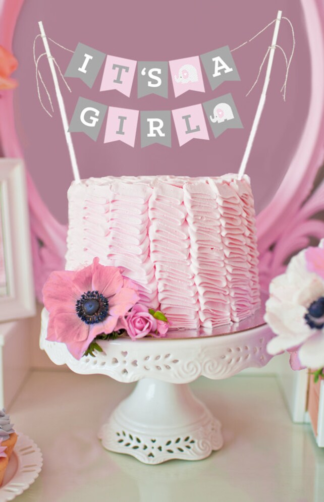 Pink Elephant Baby Shower Banner Elephant Cake Topper Baby