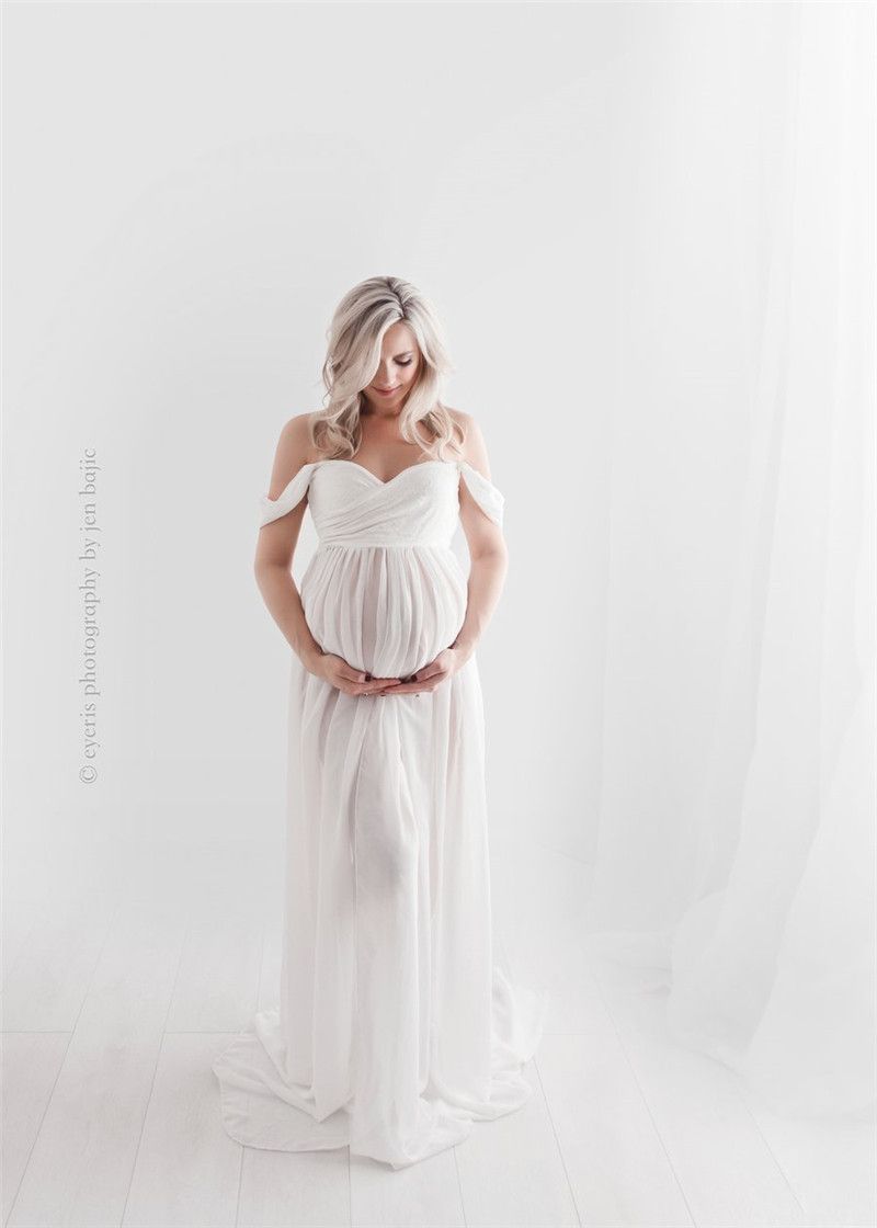 Maternity Dress Pregnant Dress Sexy Photography Props Chiffon Dresses Off Shoulders For Pregnant Women Dress White Shoulderless