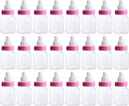 Pixnor 12pcs Plastic Mini Baby Milk Bottles Baby Shower Favors Pink