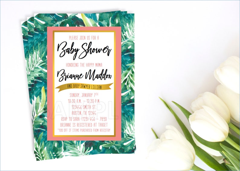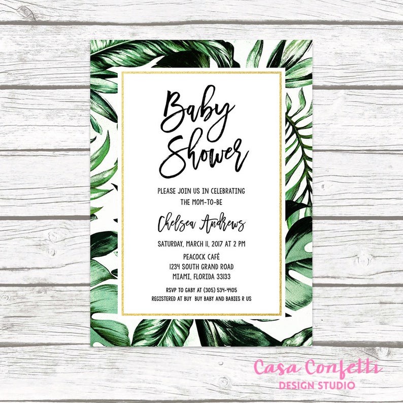 Tropical Baby Shower Invitation Tropical Invitation Palm Tree Leaf Baby Shower Invite Gender Neutral Baby Shower Printable Invitation