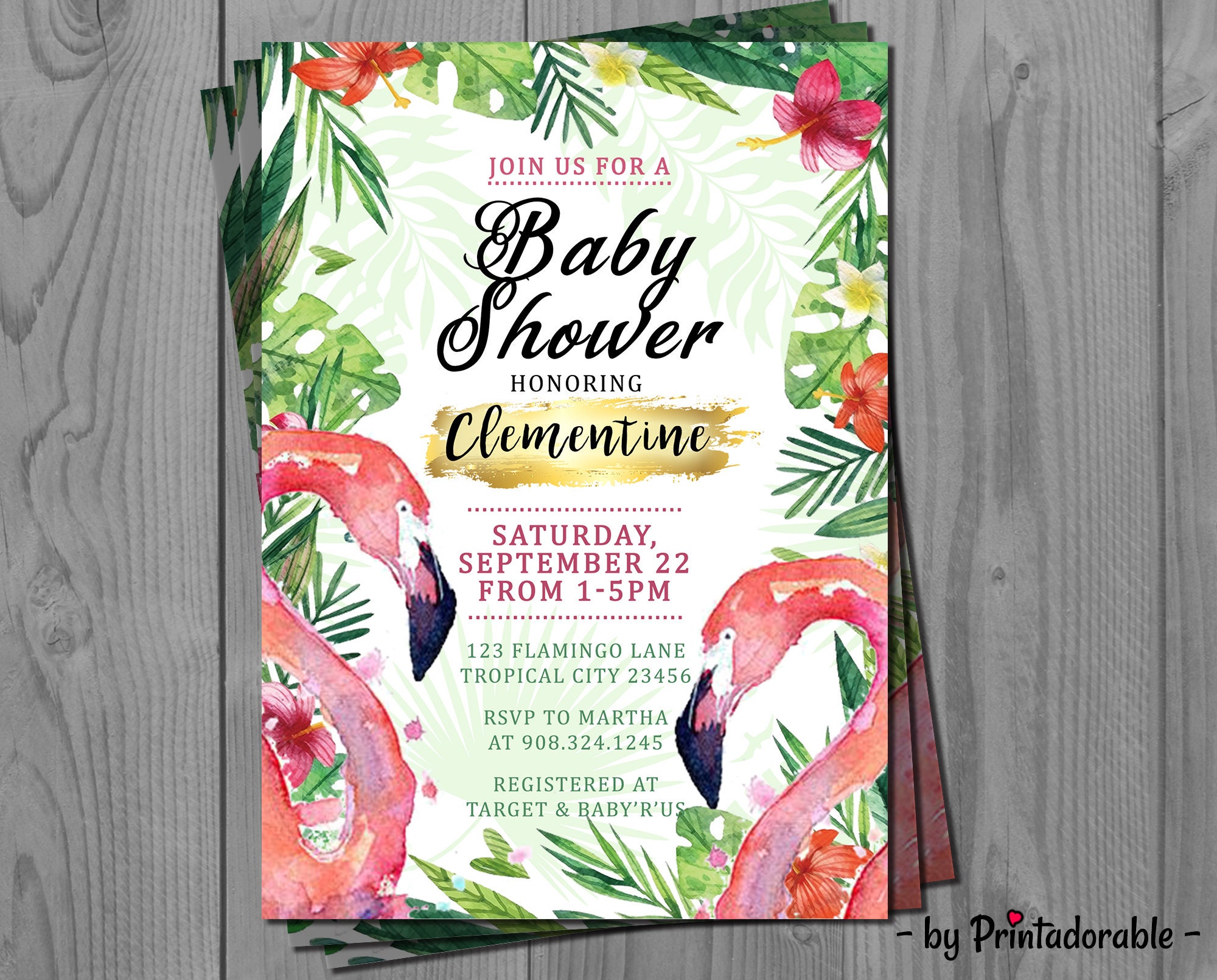 Tropical Baby Shower Invitation Flamingo Baby Shower Invitation Tropical Invites Hawaiian Baby Shower Invitation Tropical Leaves Invites