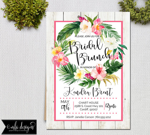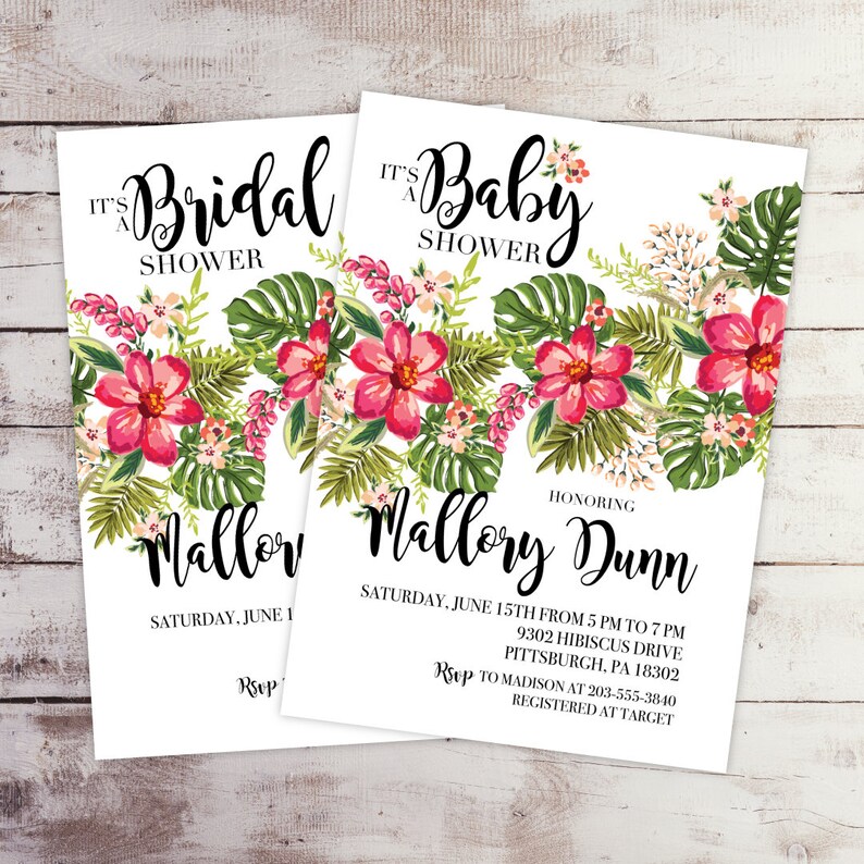 Tropical Invitation Bridal Shower Baby Shower Summer Hawaiian Luau Printed