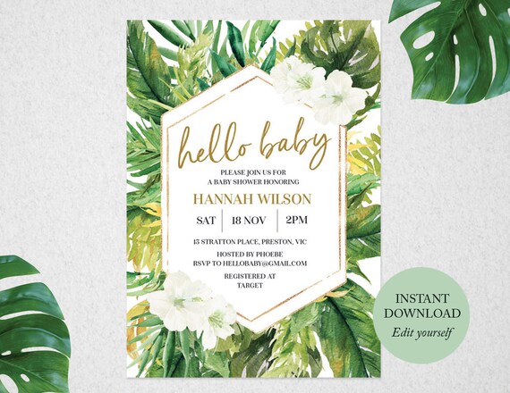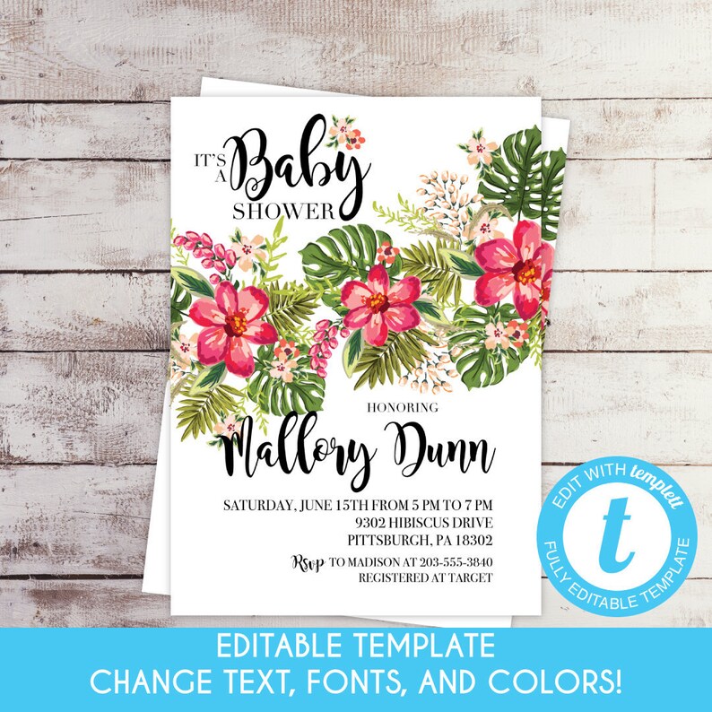 Tropical Baby Shower Invitation Tropical Invitation Baby Shower Invitation Editable Invitation Tropical Baby Shower Templett Pbb98