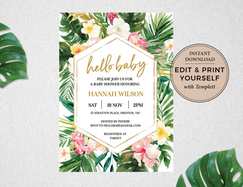 Printable Tropical Baby Shower Invitation Aloha Invite Template A2