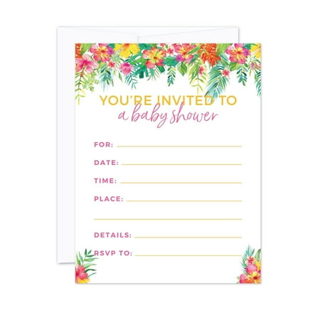 Tropical Floral Garden Party Baby Shower Blank Invitations With Envelopes 20 Pack Games Activities And Decorations