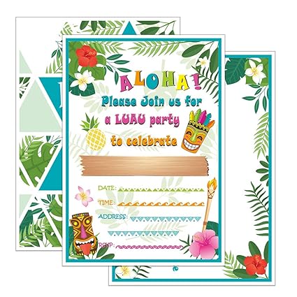 Wernnsai Hawaiian Aloha Luau Party Invitations With Envelopes 20 Set Summer Pool Tropical Birthday Baby Shower Tiki Party Supplies Invitation Cards