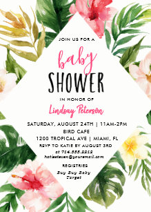 Watercolor Tropical Floral Frame Baby Shower Invitation
