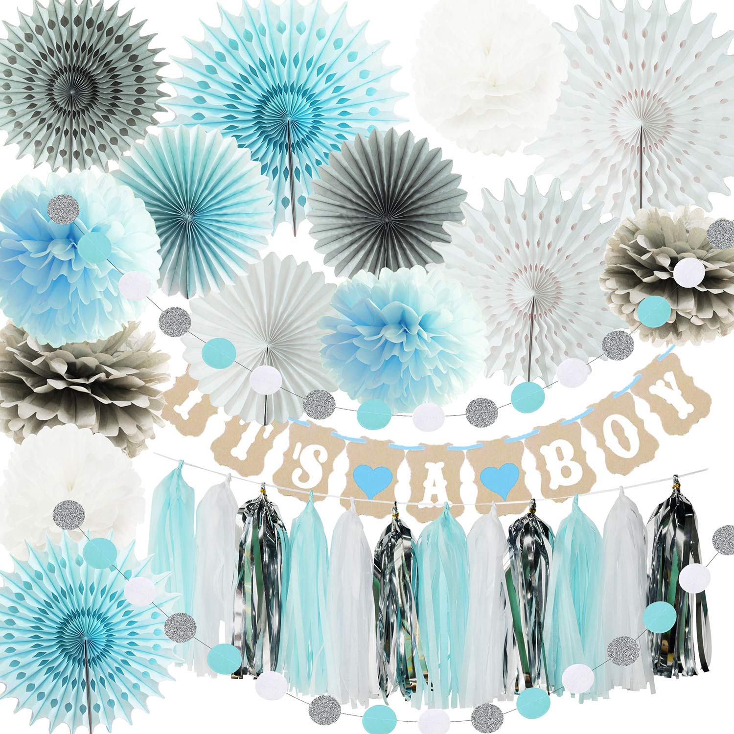 Baby Shower Decorations Kit It S A Boy Banner Baby Blue Mix White Pom Poms Flowers Paper Lanterns With Balloons Set For Welcome Baby Party Newborn