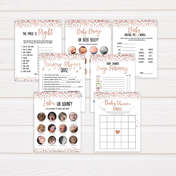 Rose Gold Baby Shower Games Pack 7 Baby Shower Games Bundle Printable Baby Shower Games Rose Gold Baby Shower Ideas Baby Shower Rg1