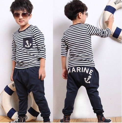Korea Styles Baby Boy S Cool Striped Tee Shirt Pants 2pcs Suits 5sets Lot