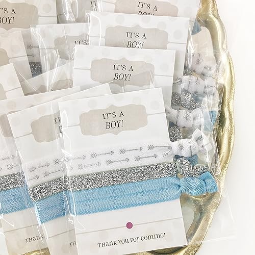 It S A Boy Baby Shower Favours 5 Pack Premium Handcrafted Hair Ties Bracelets Blue Silver Party Supplies Decorations Made In Canada