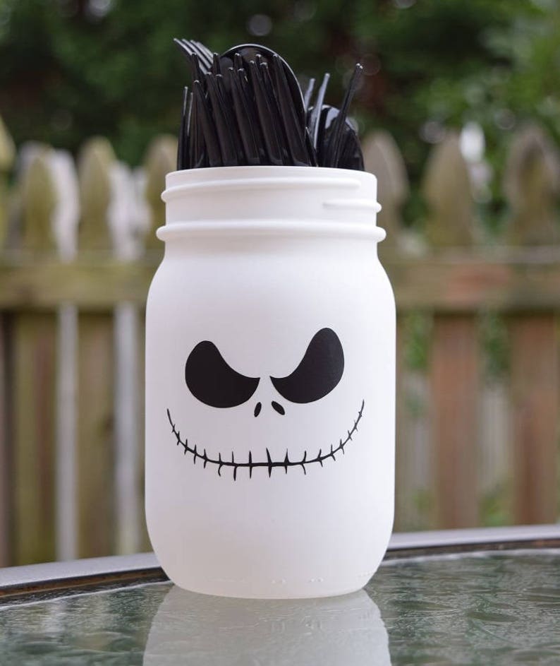 Jack Skellington Mason Jar Nightmare Before Christmas Baby Shower Nightmare Before Christmas Birthday Party Decorations Jack Mason Jar