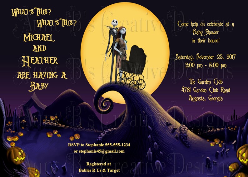 Nightmare Before Christmas Baby Shower Invitation Jack And Sally Expecting Baby Shower Invitation