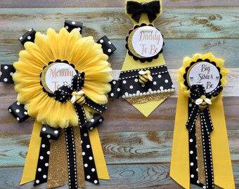 Sunflower Baby Shower Yellow Black Flower Corsage Pin Mommy To Be Daddy To Be Gender Reveal Baby Shower Bumble Bee Sunflower Theme