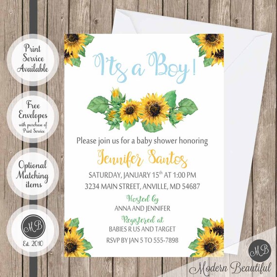 Sunflower Baby Shower Invitations Sunflower Gifts