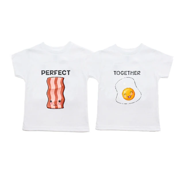 Us 8 0 White Baby T Shirt Boy Girl Short Sleeve 2018 Twin Baby Toddler Bacon And Egg Peas And Carrots Twin T Shirts Baby Shower Gifts On