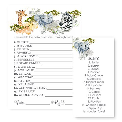 Jungle Animal Baby Shower Game Word Scramble Set Of 25 Buy