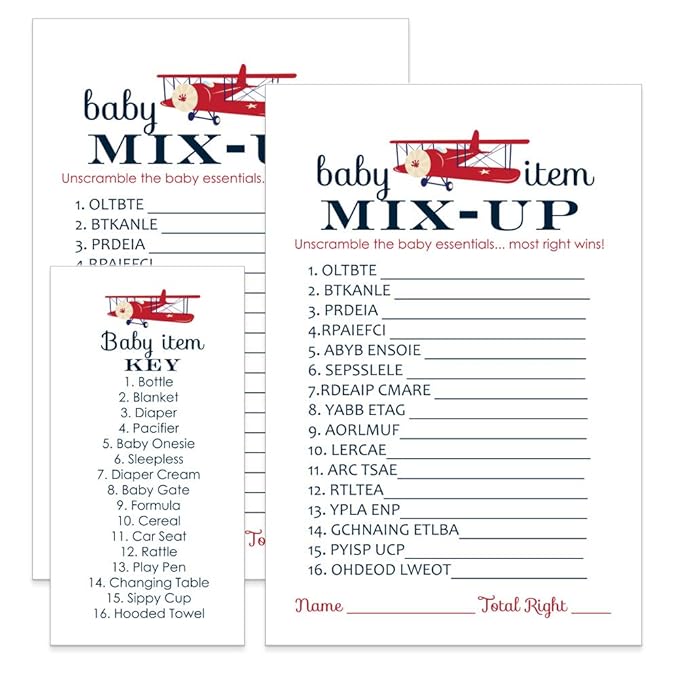 Airplane Baby Shower Games Word Scramble Cards 25 Pack Navy And Red