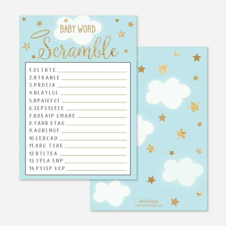 Angel Boy Baby Shower Word Scramble Template Word Scramble Baby Shower Game Word Scramble Shower Game Scramble Printable Editable