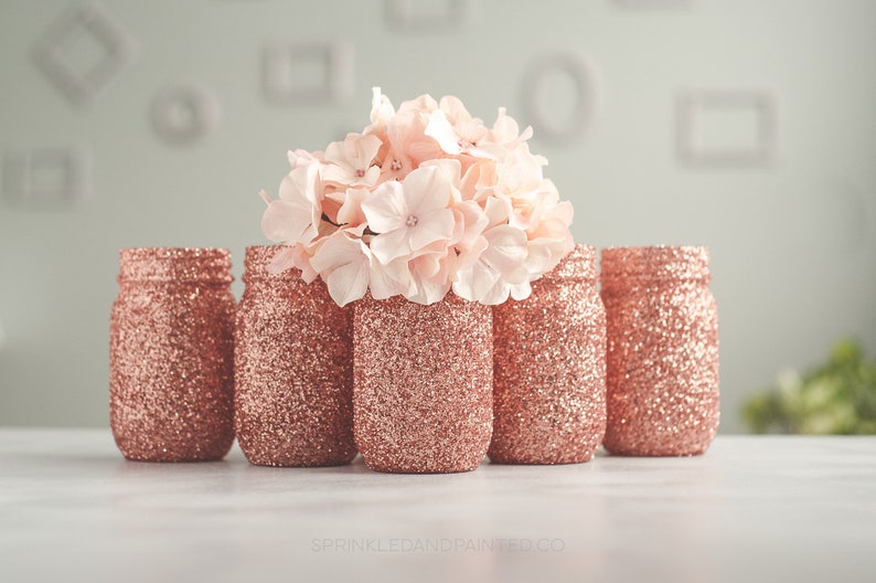 Sprinkled And Painted 6 Rose Gold Wedding Centerpieces Vases Bulk Glitter Mason Jars Bridal Shower Baby Shower From Amazon Myweddingshop