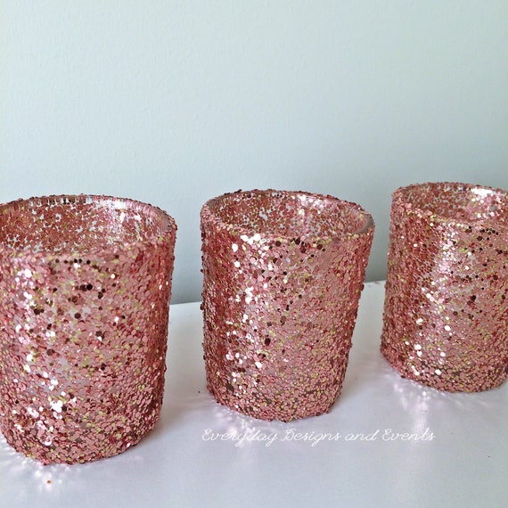Set Of 8 Rose Gold Glitter Vase Centerpieces Bridal Shower Baby Shower Rose Gold Wedding Decor Glitter Mason Jars