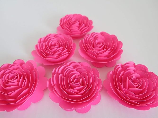 Amazon Com Neon Pink Paper Flowers 3 Roses Set Of 6