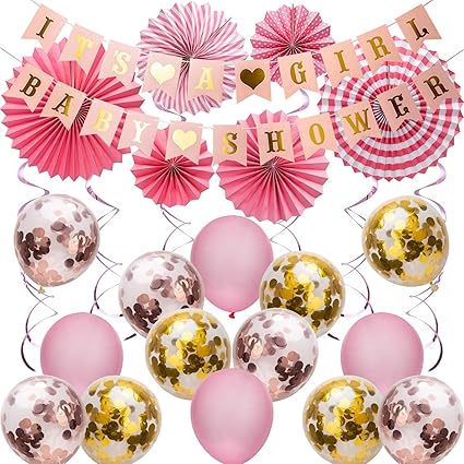 Savita Pink Baby Shower Decorations For Girls Kit Its A Girl Baby Garland Bunting Banner Paper Fans Balloons Pink Hanging Swirls Decor For Baby