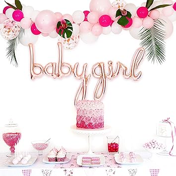 Fengrise Its A Girl Baby Shower Balloons Kraft Paper Garland Baby Shower Decoration Party Supplies Gender Reveal Party Decor