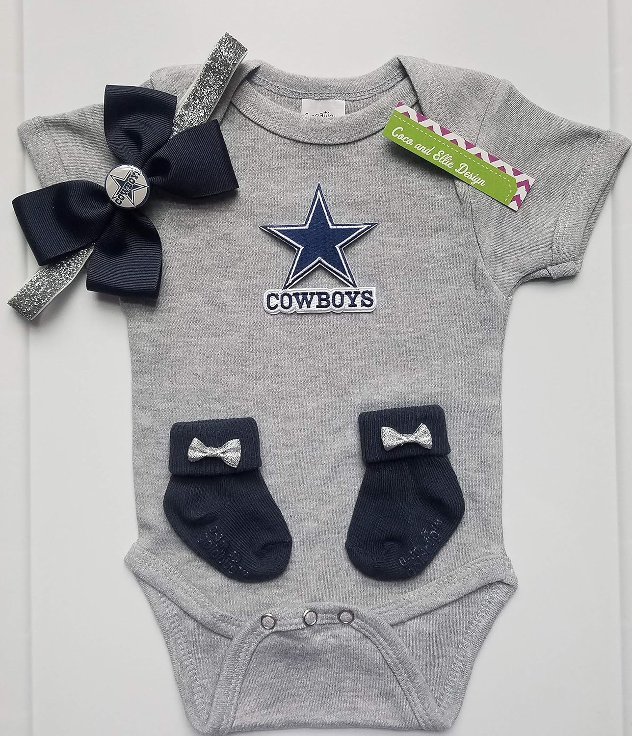 Dallas Cowboys Fan Outfit Dallas Cowboys Baby Outfit Newborn Cowboys Fan Outfit Cowboys Custom Shirt Cowboys Baby Cowboys Bodysuit Bow