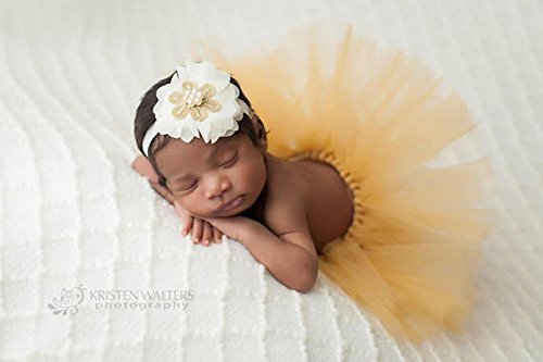 Amazon Com Gold Ivory Pearl Crown Headband Tutu Set