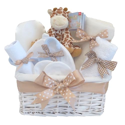 Mr Giraffe Luxury Baby Hamper Unisex For Newborns Neutral Shower Basket Essentials Newborn Gifts Boy Girl Nappy Cake Decorations Gift Set New Born