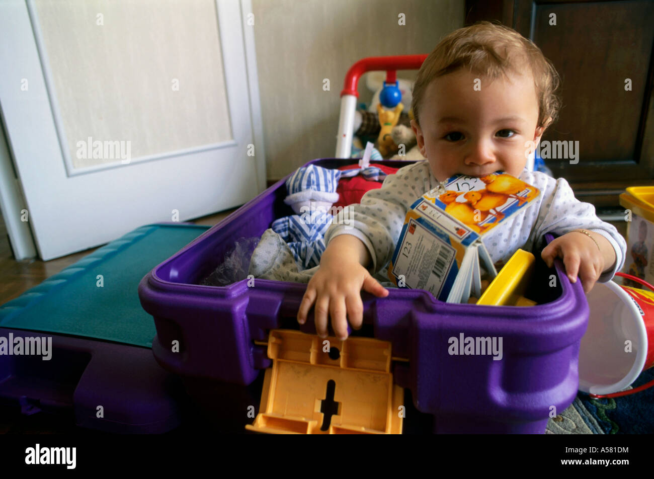 One Year Old Baby Boy Playing In His Toy Box Stock Photo