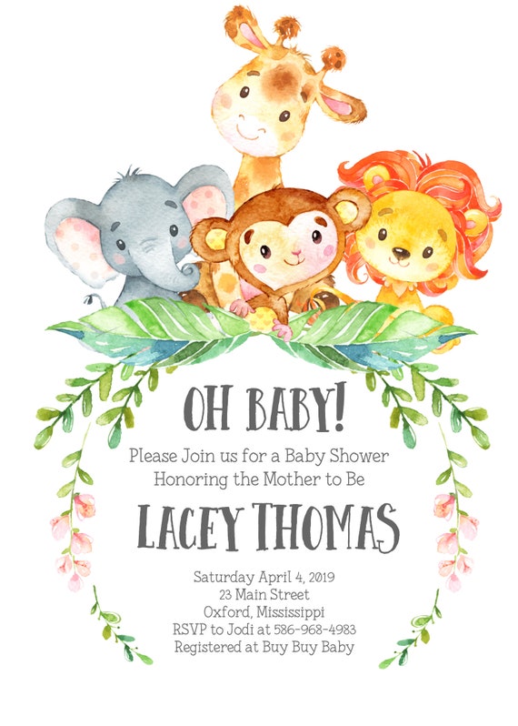 Jungle Animal Baby Shower Invitation Watercolor Jungle Animal Invitation Jungle Animals Invitation Animal Baby Shower Invitation