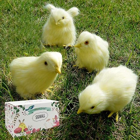 4 Pcs Spring Easter Chick Decor Realistic Eat Fly Yellow Baby Chick Lifelike Furry Chicken Figurine Rabbit Fur Plush Animal Toy Easter Holiday