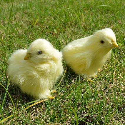 2pcs Spring Easter Chick Decor Realistic Eat Fly Yellow Baby Chick Lifelike Furry Chicken Figurine Rabbit Fur Plush Animal Toy Easter Holiday