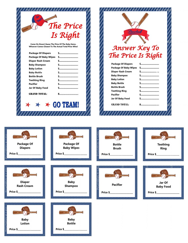 Baseball Price Is Right Printable Baseball Baby Shower Price Game Baseball Shower Game Baseball Baby Price Game Printables 4 Less 0003
