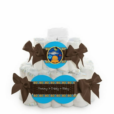 Under The Sea Critters 2 Tier Square Baby Shower Diaper Cake