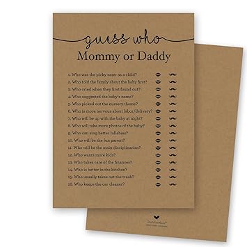24 Cnt Mommy Or Daddy Guess Who Baby Shower Game Kraft