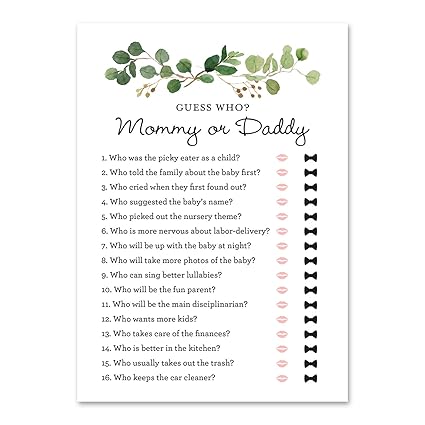 Invitationhouse 24 Greenery Guess Who Mommy Or Daddy Game Mom Or Dad Quiz